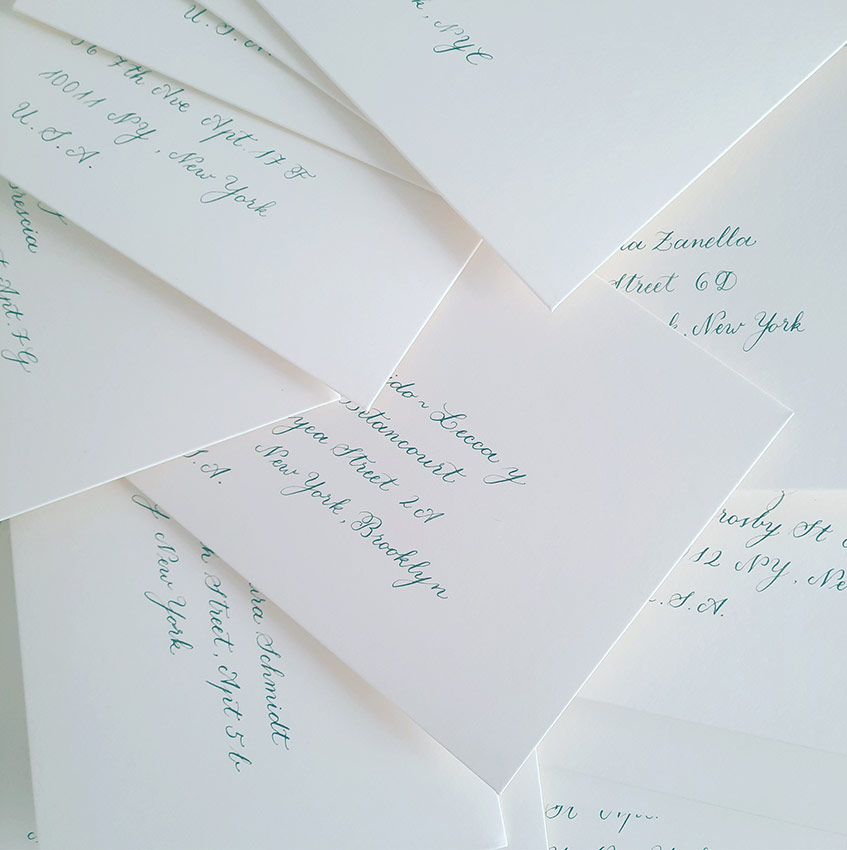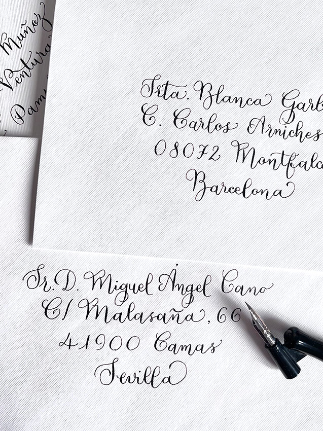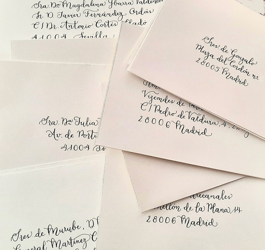 Caligrafía en sobres y tarjetas